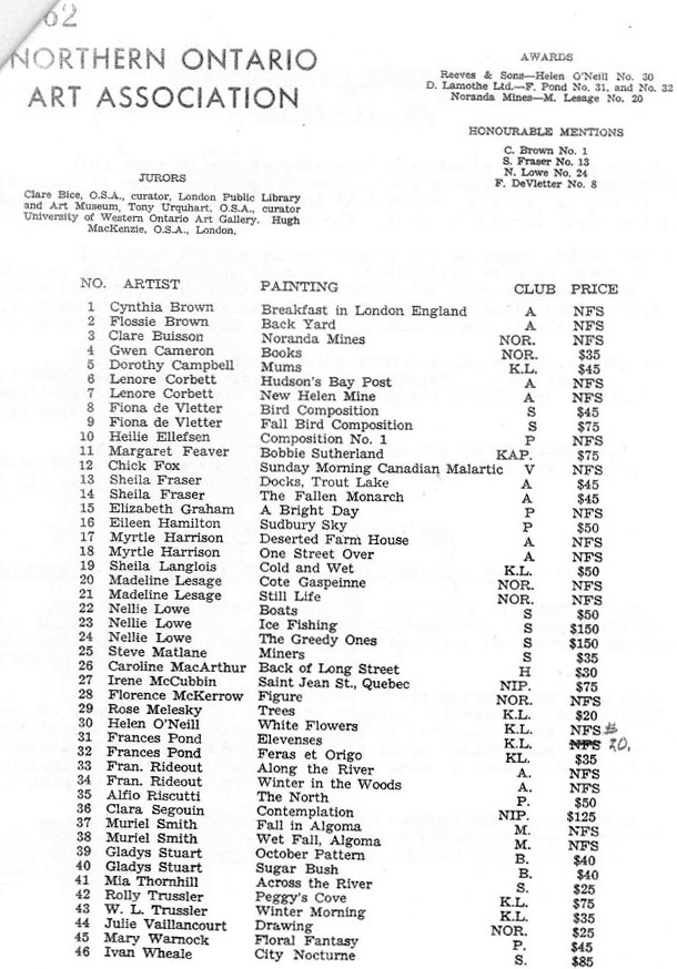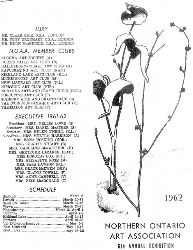 - 5th Annual NOAA Exhibition – Opened in Sudbury – jurors Mrs. Gilbert Bagnani, Henri Masson and William Winter