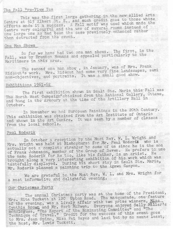 - Aug 19 – 27, 1962 Algoma Art Society Summer School – Louis Mulstock instructor