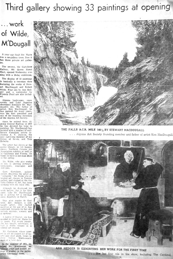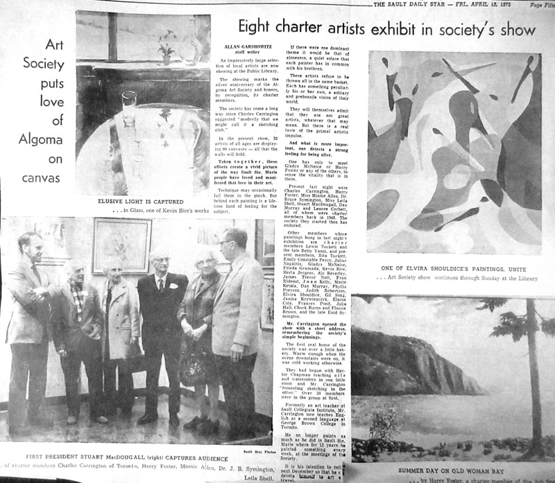 - April 12 - 15, 1973 – Algoma Art Society’s Silver Anniversary Show - opening officiated by Charles Carrington now of Toronto - charter members were invited to exhibit work with active members such as Dan Murray