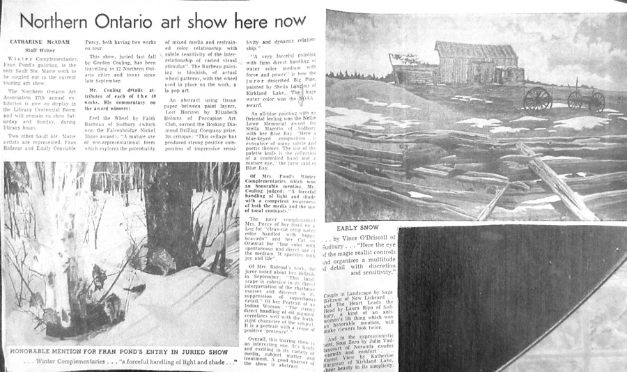 - 15th Annual NOAA Exhibition – Opened in Timmins – jurors Kay Kritzwiser, Paul Fournier, and Paul Bennett