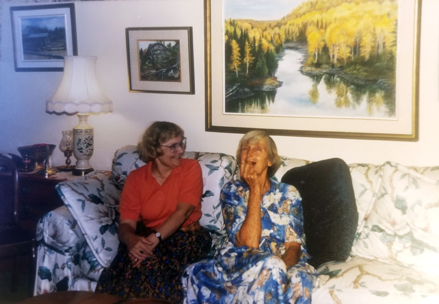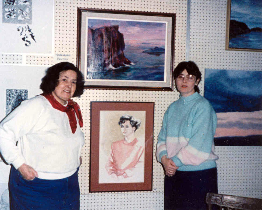 Algoma Art Society Show in the Centennial Room of the Main Public Library in February 1991 - Katie Kopec and Judy Henderson in photo