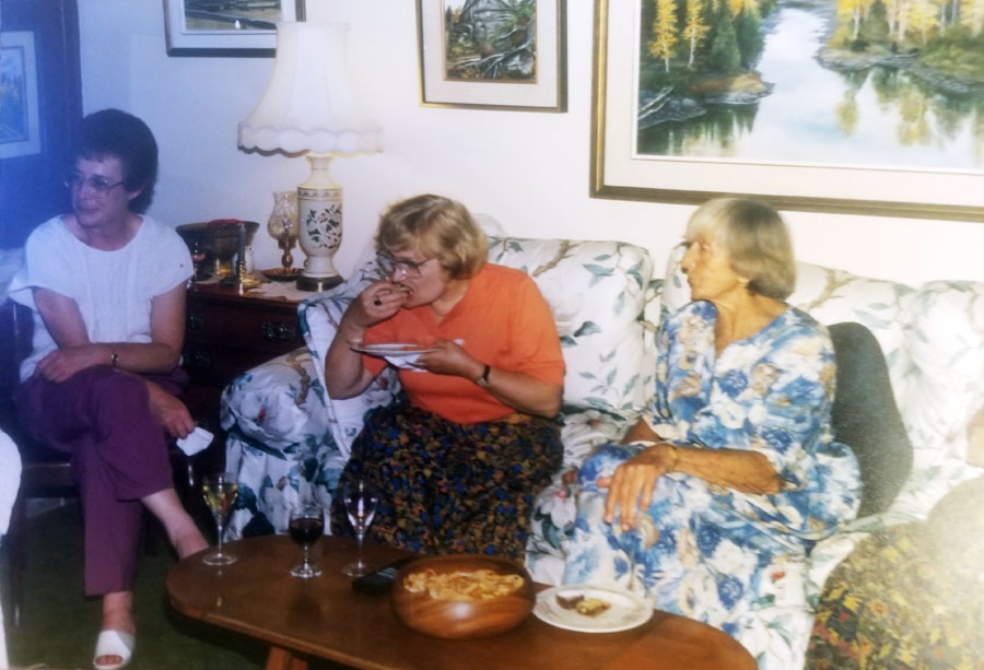 - At left - Lillian Positano, Katie Kopec, Pat Barrow (in front) - Fran Pond (centre of photo) - to right, Doris Pavelich and Jeannette Clarida