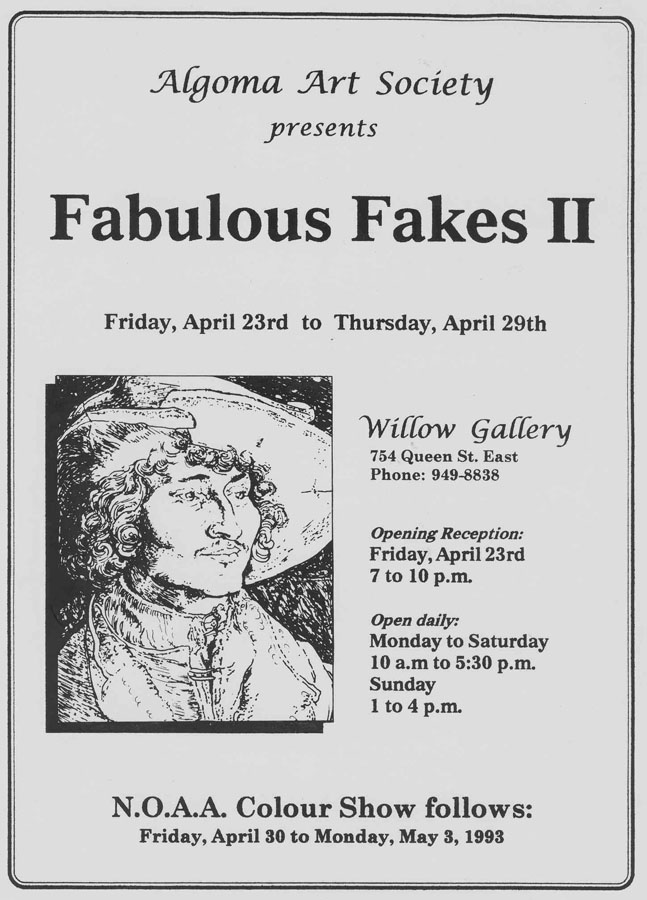 - Fabulous Fakes II - Algoma Art Society Art Exhibition at Willow Gallery - Friday, April 23 to Thursday, April 29, 1993