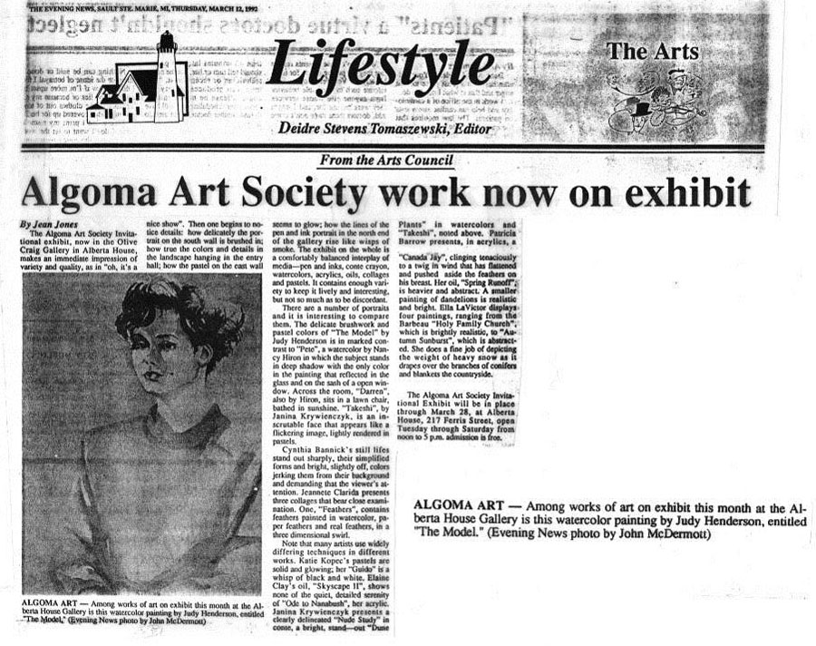 March 1992 - Algoma Art Society Exhibition at Alberta House in Sault Michigan
