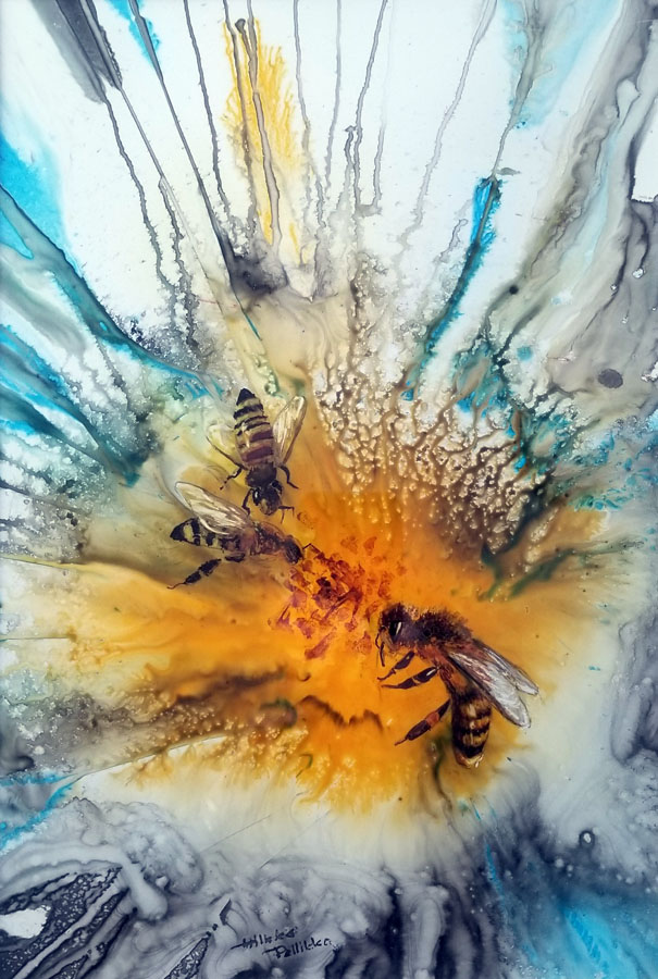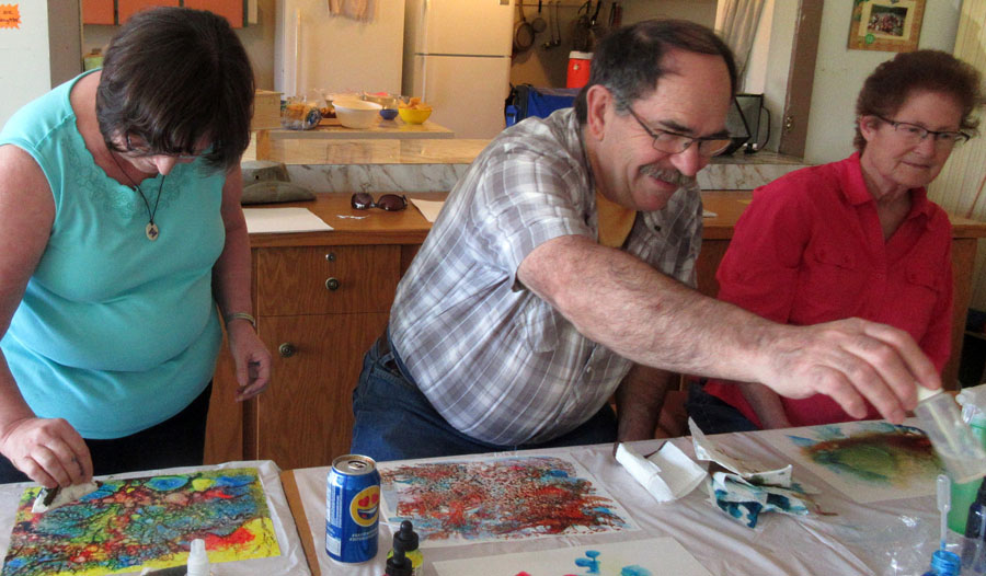 June Acrylic Ink Art Workshop and Pot Luck at Hilkka Pellikka`s church camp