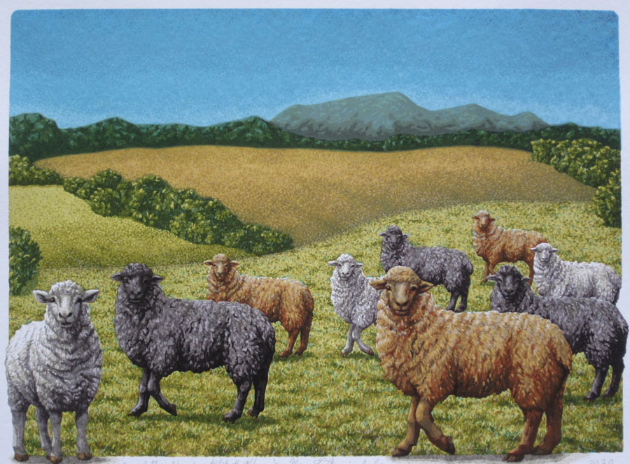 Honorable Mention - One of These Sheep in Not Like the Others - Hand Pulled Serigraph - by Margot Cormier-Splane