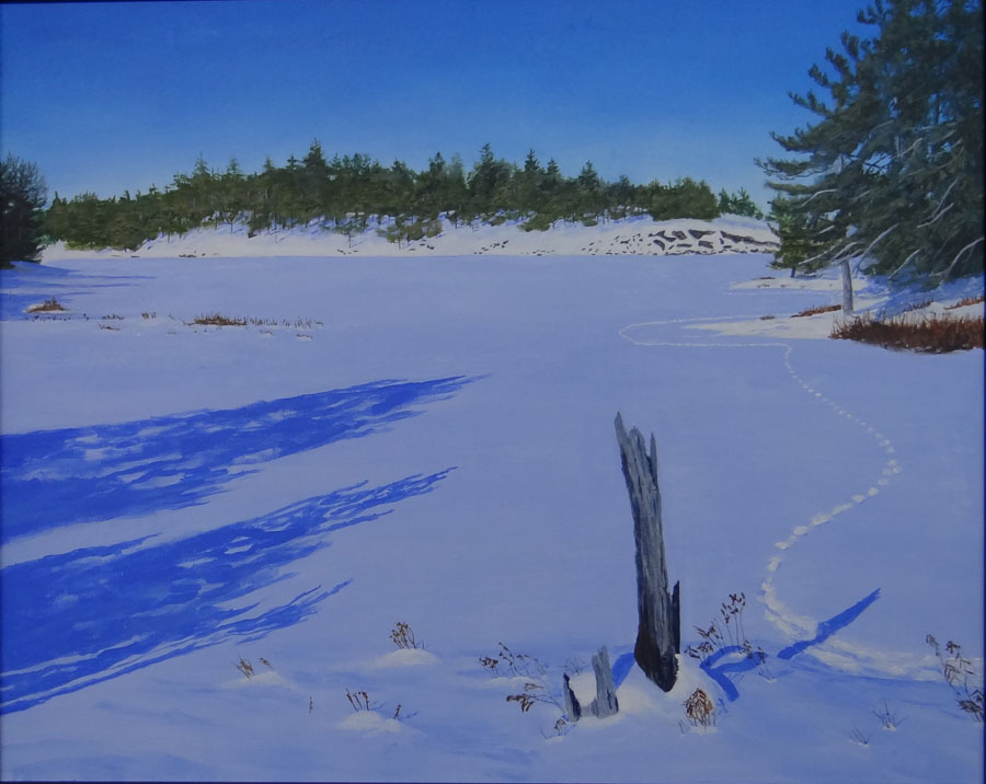 Winter Fox Trail on Lake - Acrylic - by Doug Goudale