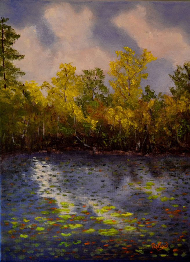 Honorable Mention - Chris Clark for acylic entitled Misty Morning Paddle