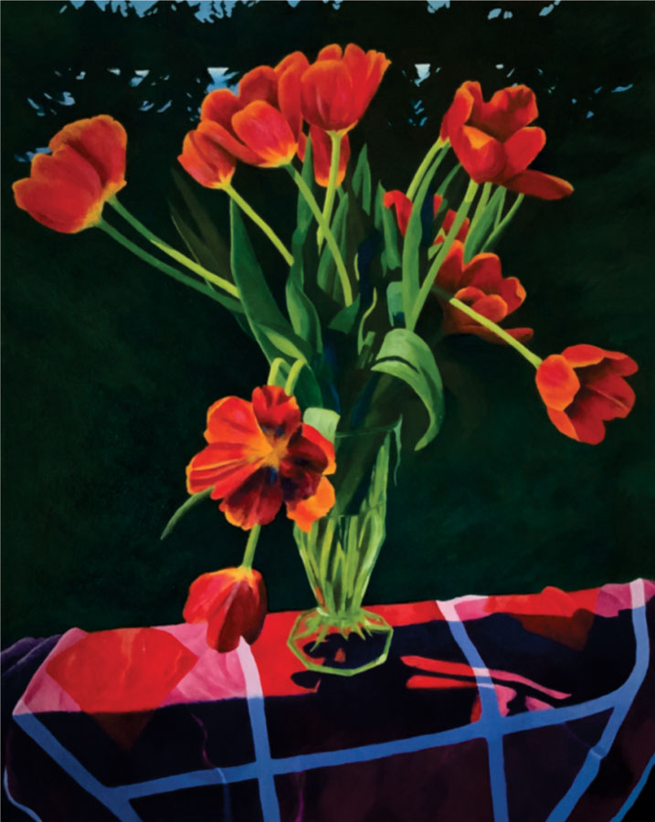 Susan Zabel Mancantelli Award - Best Use of Colour - Sue Gamble for acrylic painting entitled Scarves, Tulips and Ice on the Lake